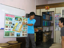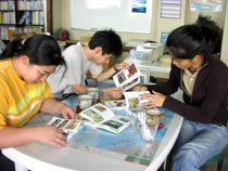 リーフトレイルから戻ってきたら、飲み物片手に、今日のフィールドの場所や地形を確認したり、見た生き物などを図鑑で調べたりして記録付け。