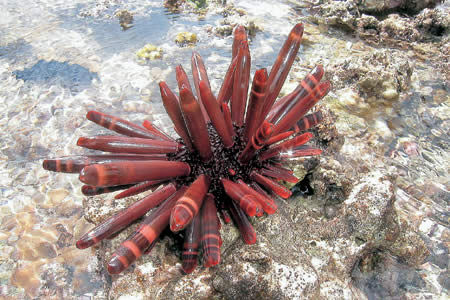「イノー」と呼ばれるサンゴ礁の内側の穏やかな海にはカラフルな魚、ナマコ、ウニ、ヒトデ、カニ、貝、サンゴなど様々な生き物が息づき、豊かな生態系を作り出しています。
