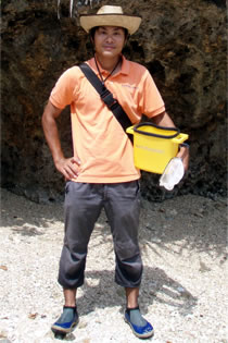 干潮時の海を歩きます。膝くらいまで水の中に入りますので、濡れてもよい靴を履いてください。サンゴ・ウニなど怪我の原因となるものがあり、ビーチサンダルは避けましょう。ウォーターシューズと呼ばれるような靴が最適ですが、運動靴などでそのまま参加しても結構です。スポーツサンダルもOKですが水用でないものはベルトをとめているのりがおちてこわれてしまうこともありますので気をつけてください。